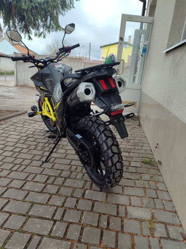 Розмір передніх шин: Дорожня гума: 110/90-17 Шини для бездоріжжя: 4.60-17. Розмір задніх шин: Дорожня гума: 130 / 80-17 Шини для бездоріжжя: 5.1-17 дюймів.
